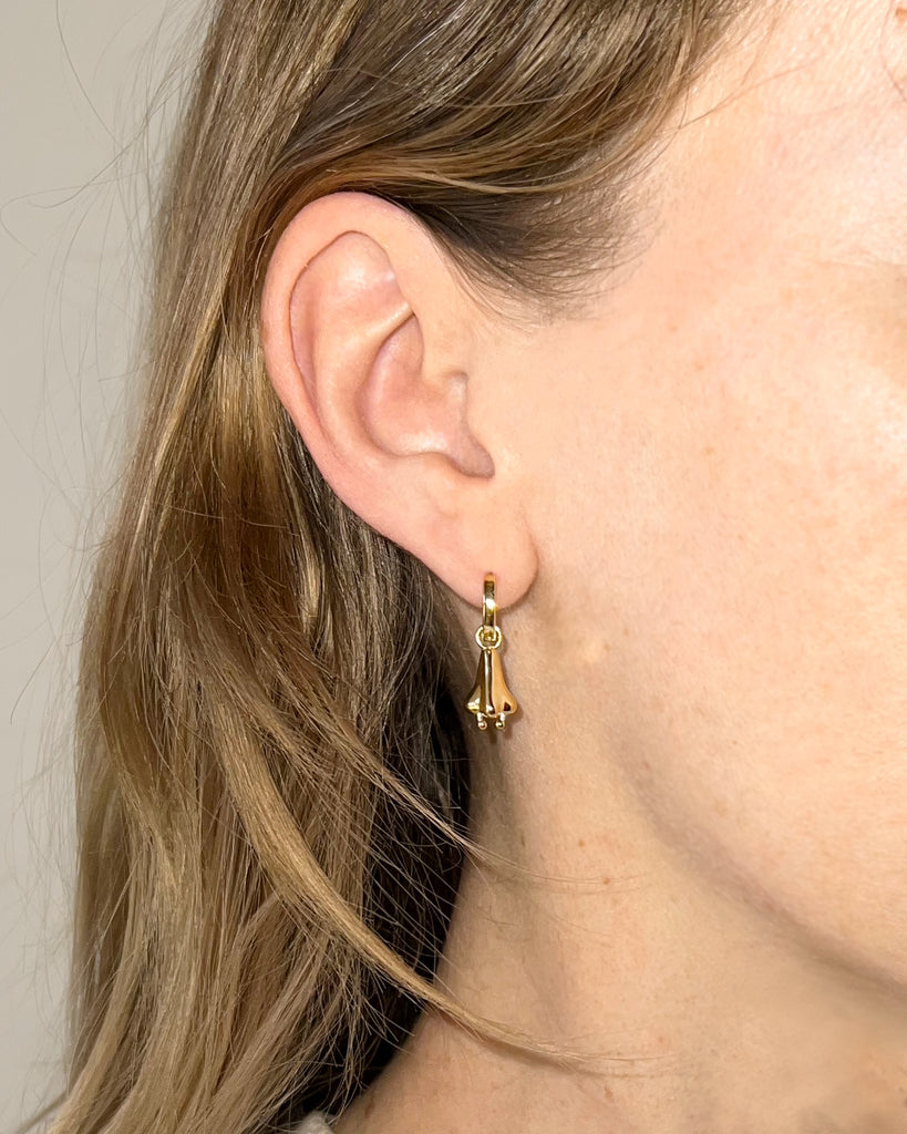 We love to mix and match our charm huggies for a fun ear party! Another way to wear the huggies are as charms– slide them onto the Eavesdrop Clasp Earrings or Necklace!